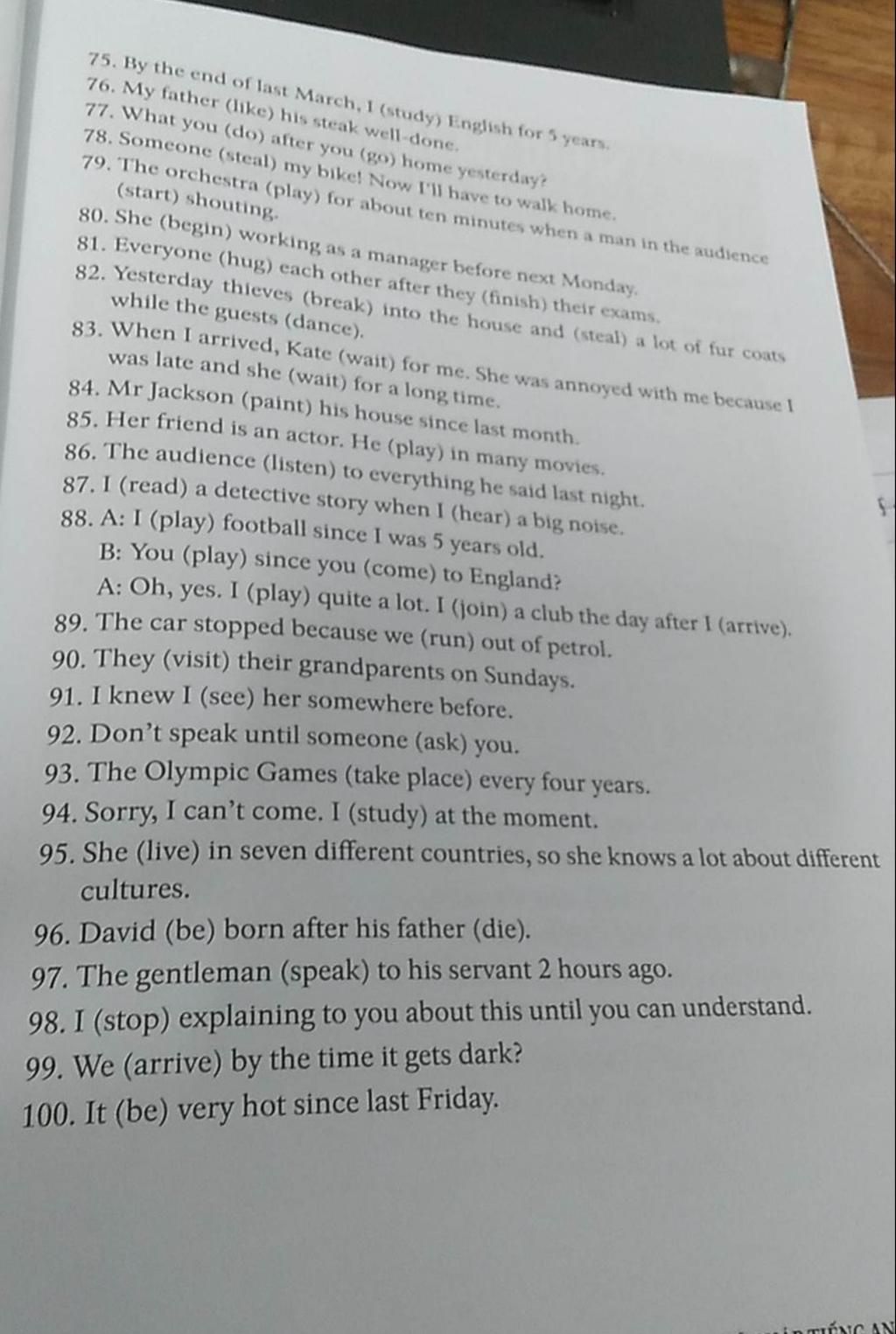 `*` DHNB : at that/this time yesterday, at + giờ cụ thể + thời gian trong QK …