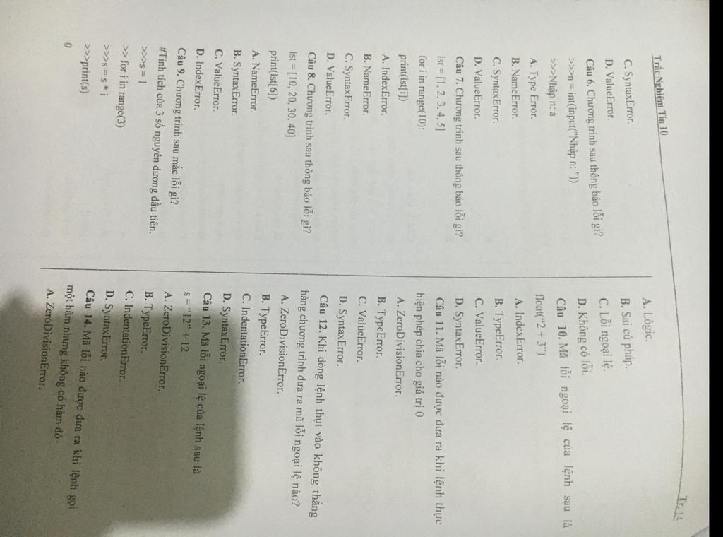 Câu 6. Chương trình sau thông báo lỗi gì?