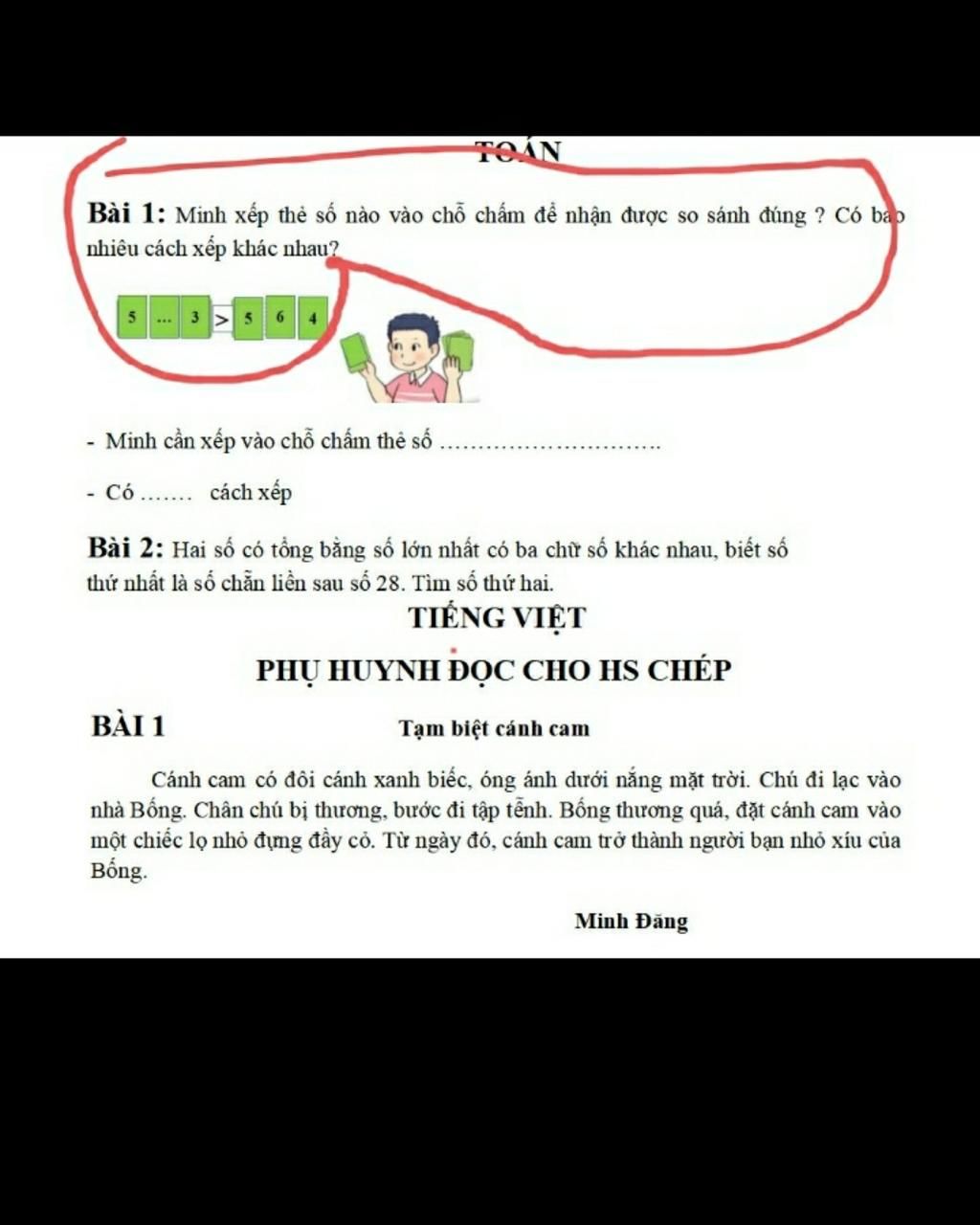 a)Minh cần xếp vào chỗ chấm thẻ số `7` hoặc `8` hoặc `9`