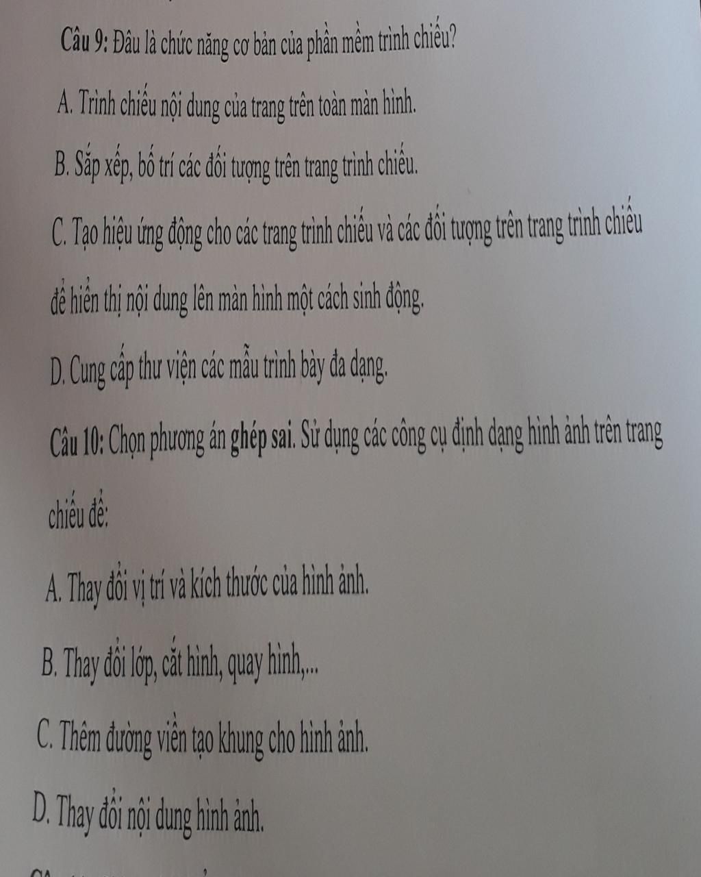 Câu 9: A D