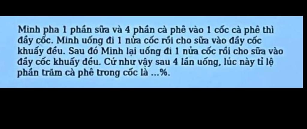 phần trăm cà phê trong cốc là ...%.