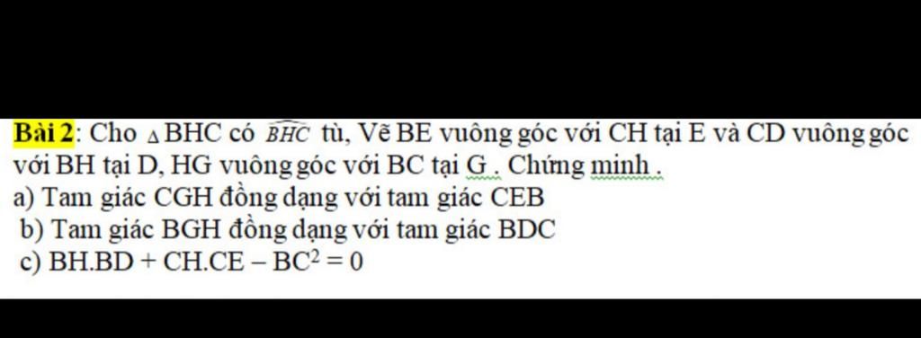 b $\to \dfrac{BH}{BC}=\dfrac{BG}{BD}\to BH\cdot BD=BG\cdot BC$
