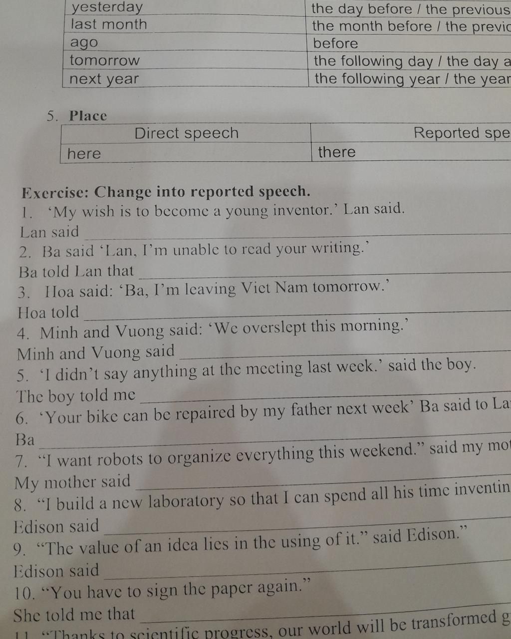 3. Hoa told Ba that she was leaving Viet Nam the next day.