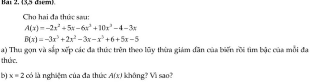 Vậy, `2` không phải là nghiệm của đa thức `A(x)`