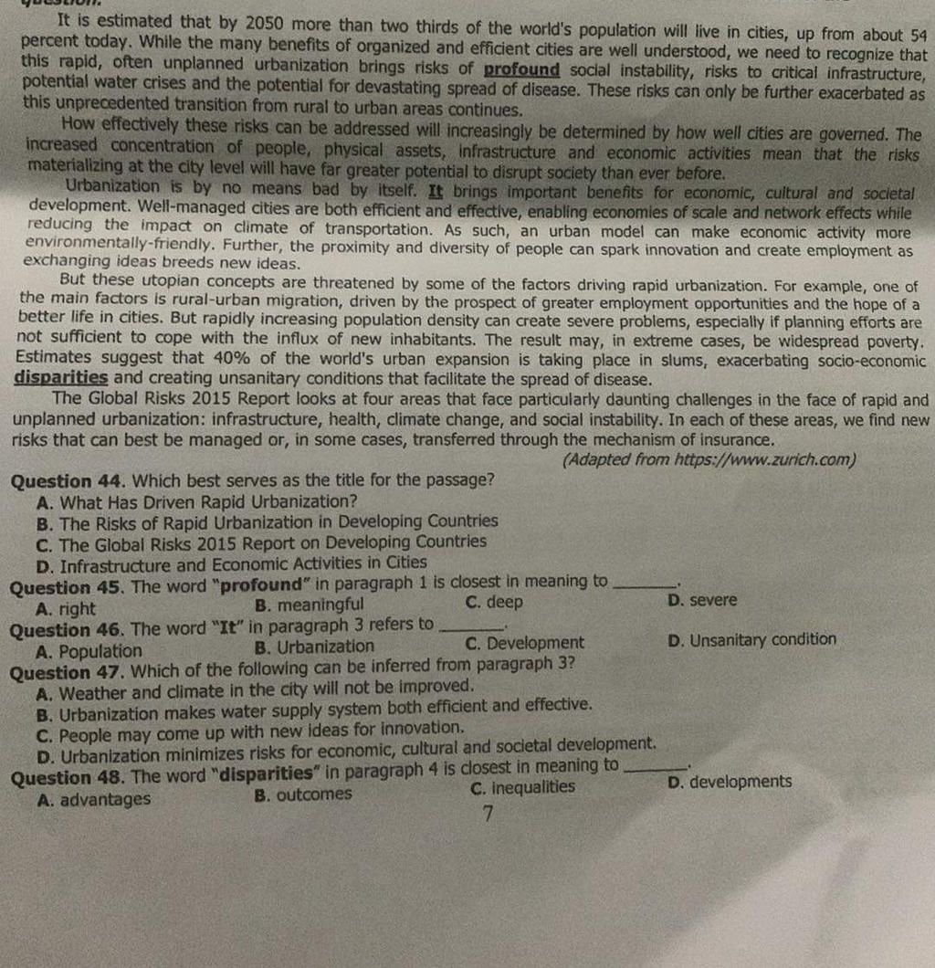 It is estimated that by 2050 more than two thirds of the world's population will live in cities, up from about 54