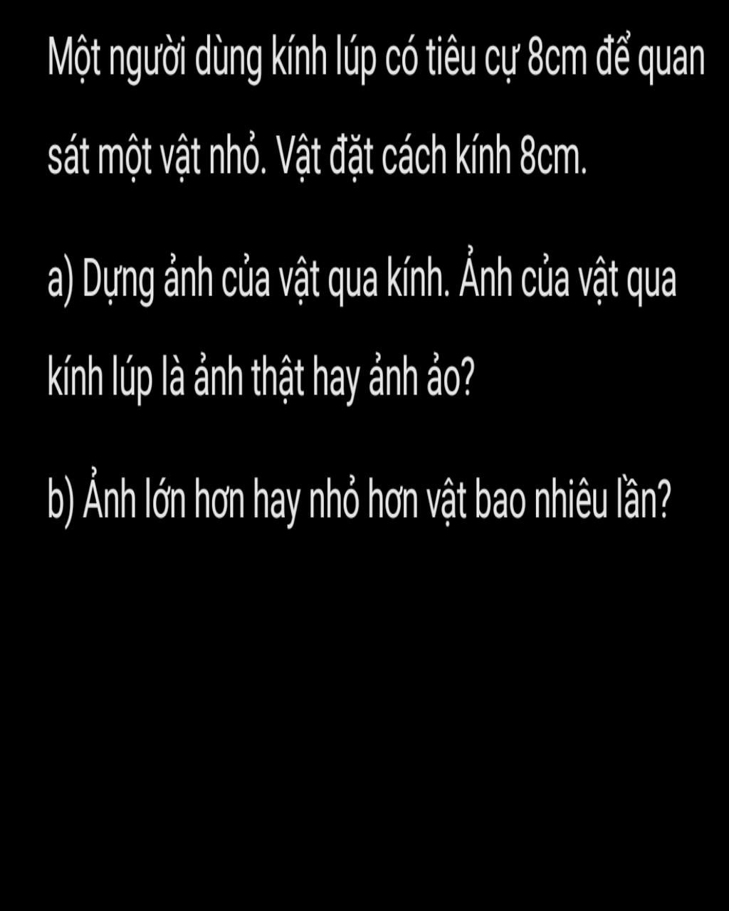 a) Hình. Vì ảnh A'B' được tạo bởi kính lúp nên ảnh là ảnh ảo