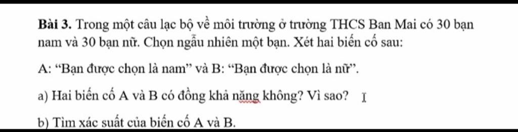 `a)` $\text{Hai biến cố có đồng khả năng}$