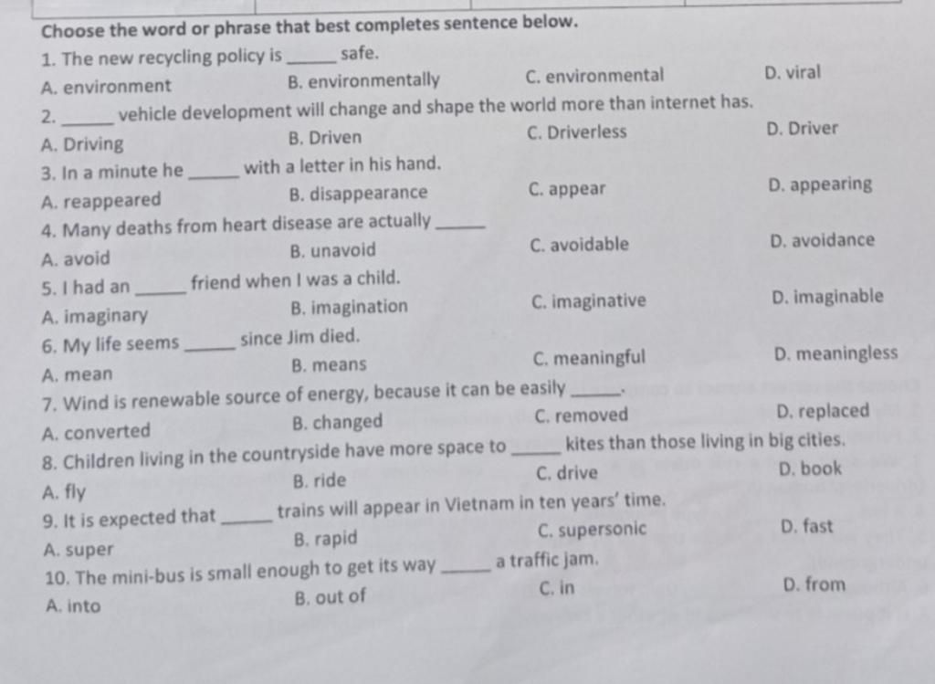 Choose the word or phrase that best completes sentence below.