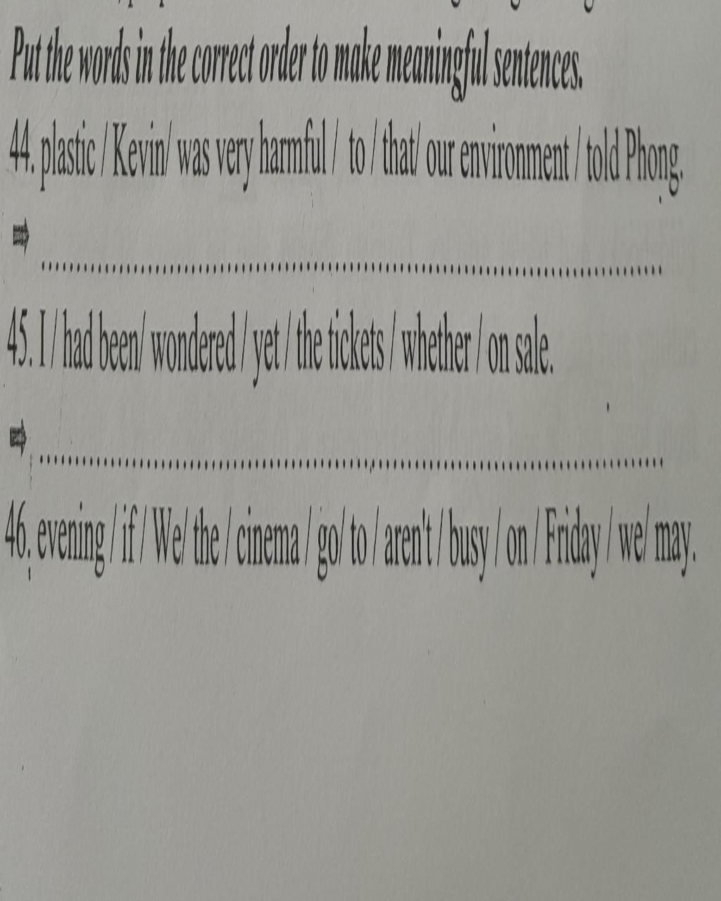 `44` Kevin told Phong that plastic was harmful to our environment.