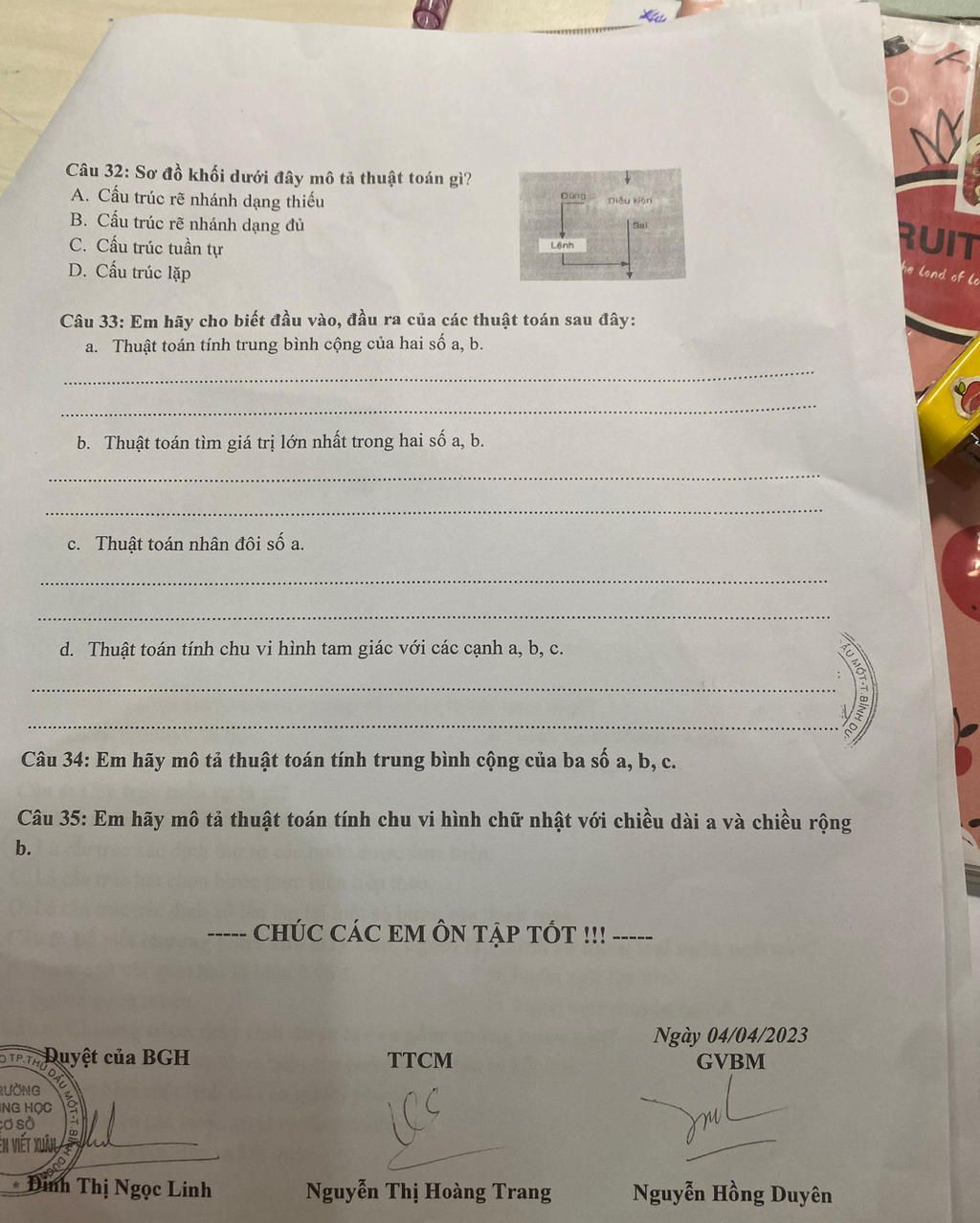 Câu 32: Sơ đồ khối dưới đây mô tả thuật toán gì?