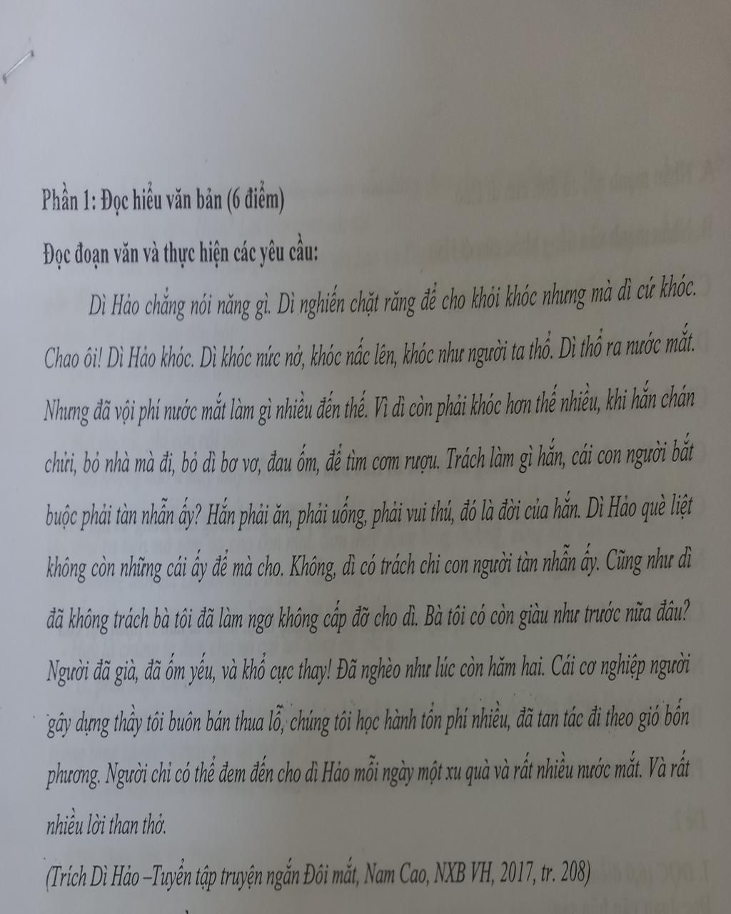 Nam Cao luôn luôn là tác giả viết về những người nông dân trước Cách Mạng. Họ luôn sống những cuộc sống khổ cực. Trong truyện ngắn " Dì Hảo" Nam Cao không miêu tả quấ nhiều về ngoại hình của dì mà bắt đầu đoạn trích bằng những tiếng khóc, những giọt nước mắt. Dì Hảo khóc nghiến rằng, khóc đến mức thổ ra mà vẫn im lặng không nói lời nào. Dì bị người đàn ông mắng, chửi mà dì chỉ chọn im lặng và khóc. Người kể truyện có nói là dì không trách hắn vì dì không thể mang đến gì cho hắn như ăn, uống, vui thú. Dì đúng là một người phụ nữ truyền thống, họ luôn là người chịu nhẫn nhịn, chịu đựng mọi điều, tất cả mọi việc đều im lặng và khóc. Đó chắc hẳn thấy được nhiều trên những người phụ nữ sống trong xã hội trước Cách Mạng tháng 8. Tác giả Nam Cao không đưa quá nhiều biện pháp nghệ thuật mà ông chỉ tập trung miêu tả những thay đổi nội tâm, tâm lý của nhân vật. Từ đó làm nổi bật lên những điều mà Dì Hảo có. Mỗi câu chuyên của Nam Cao đều đem đến cho chúng ta mỗi sống phận, mỗi cuộc đời của con người trước CMT8.