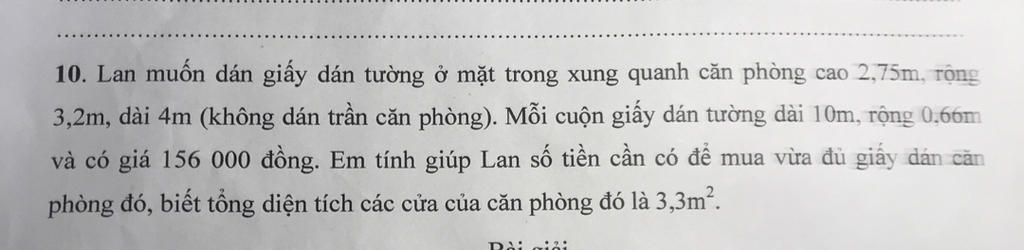 Số cuộn giấy dán tường cần để dán đủ cho căn phòng là: