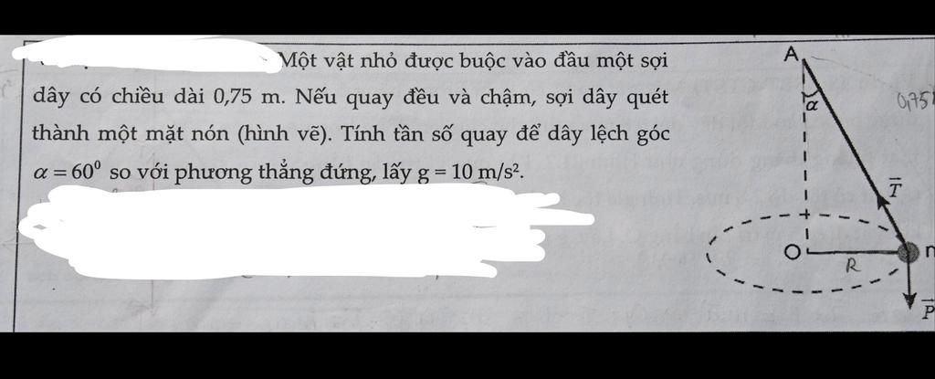\sin \alpha = \dfrac{R}{l} \Rightarrow \sin 60 = \dfrac{R}{{0,75}} \Rightarrow R = \dfrac{{3\sqrt 3 }}{8}\left( m \right)\\