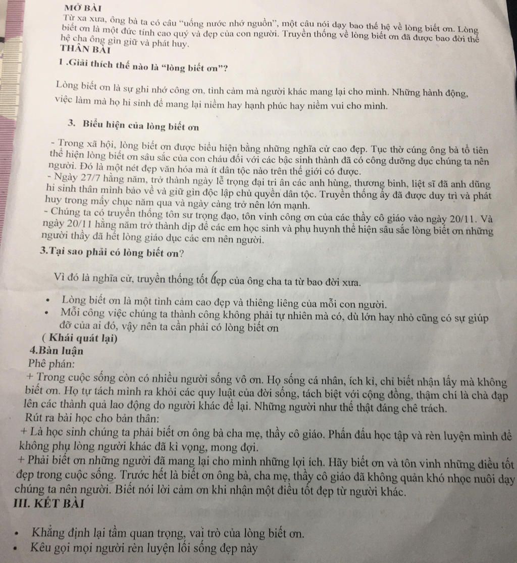 Làm bài văn nghị luận về lòng biết ơn ( dựa trên dàn ý )