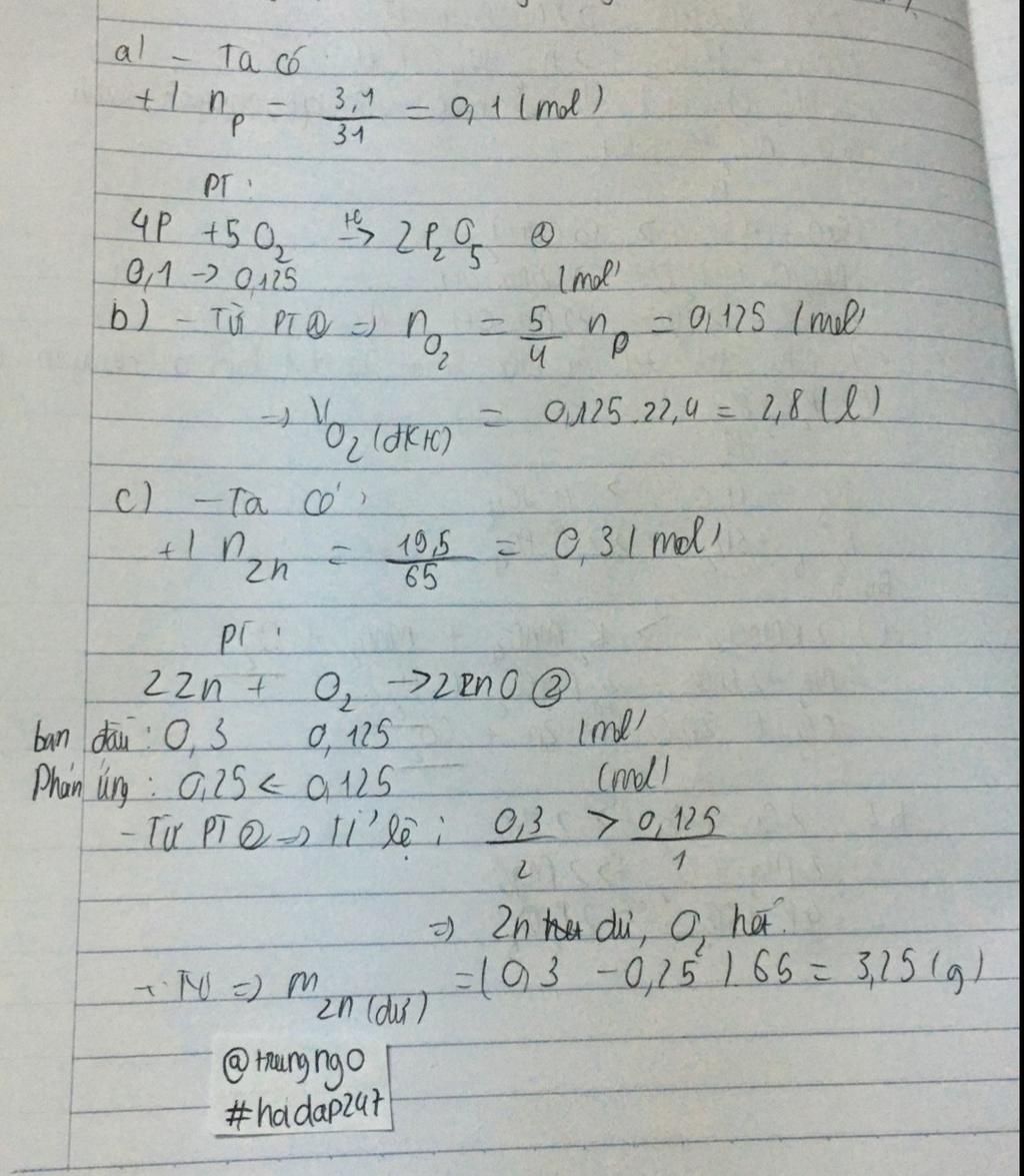 \to {n_{{O_2}}} = \dfrac{5}{4}{n_P} = 0,125mol\\