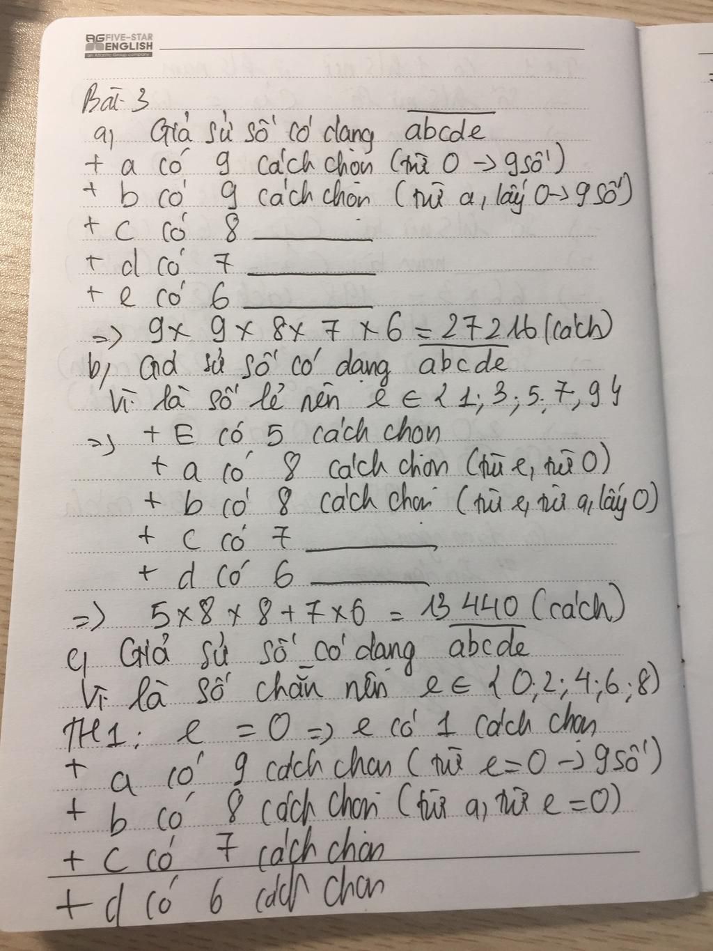 Ở trang tiếp theo là "b có: 8 cách chọn (trừ 9, e lấy 0)" đúng không bạn?
