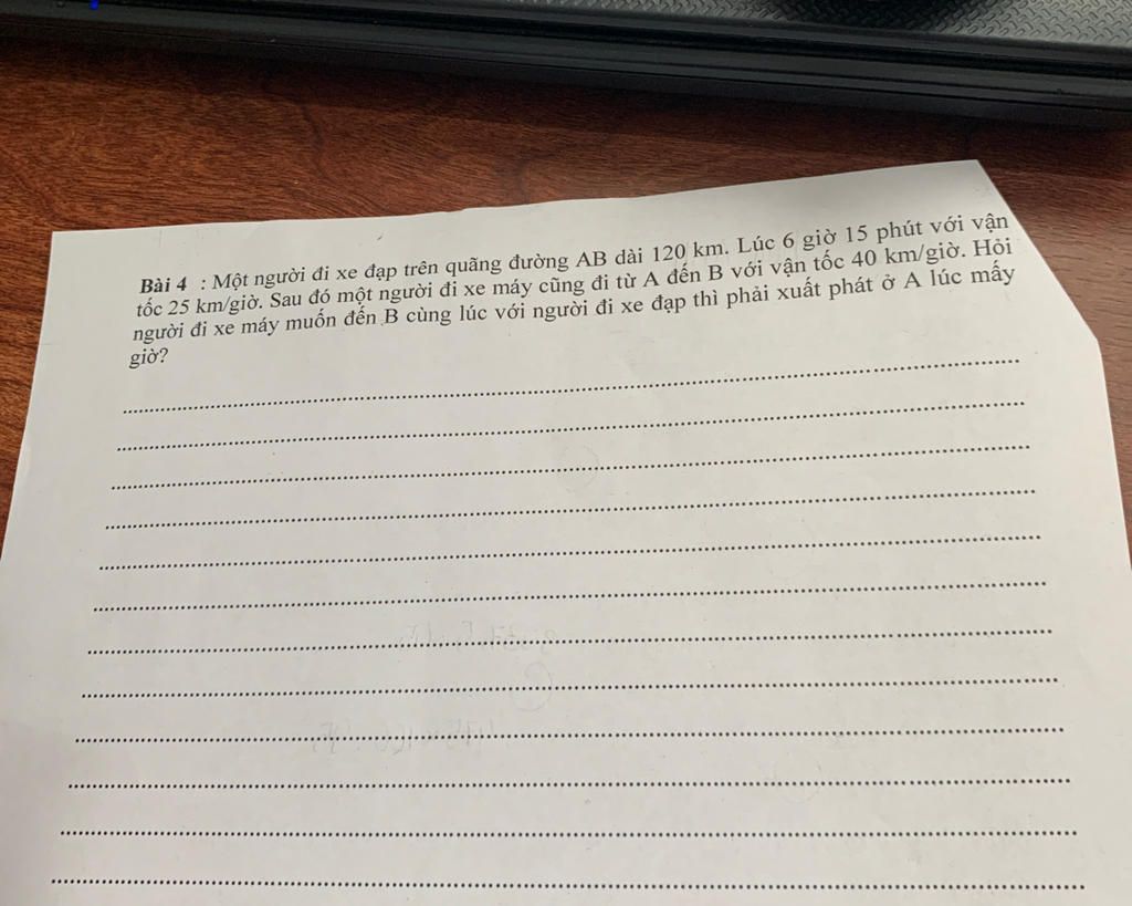 thơi gian người đi xe máy phải đi nếu muốn đến B cùng lúc với người đi xe đạp là