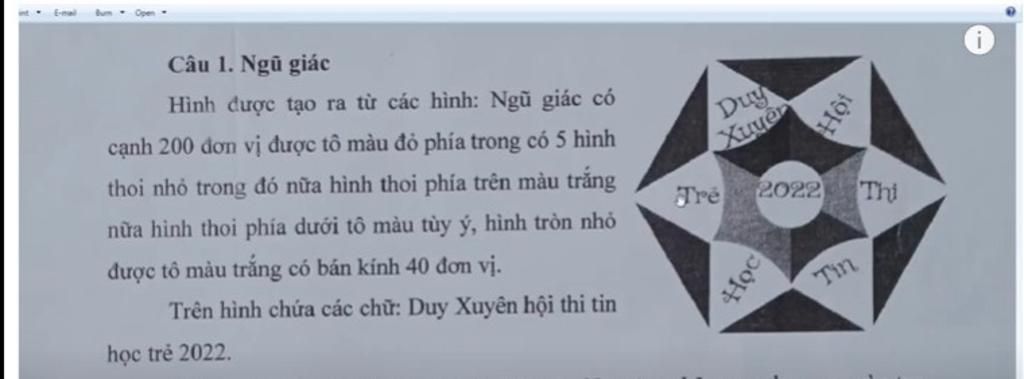 cạnh 200 đơn vị được tô màu đỏ phía trong có 5 hình