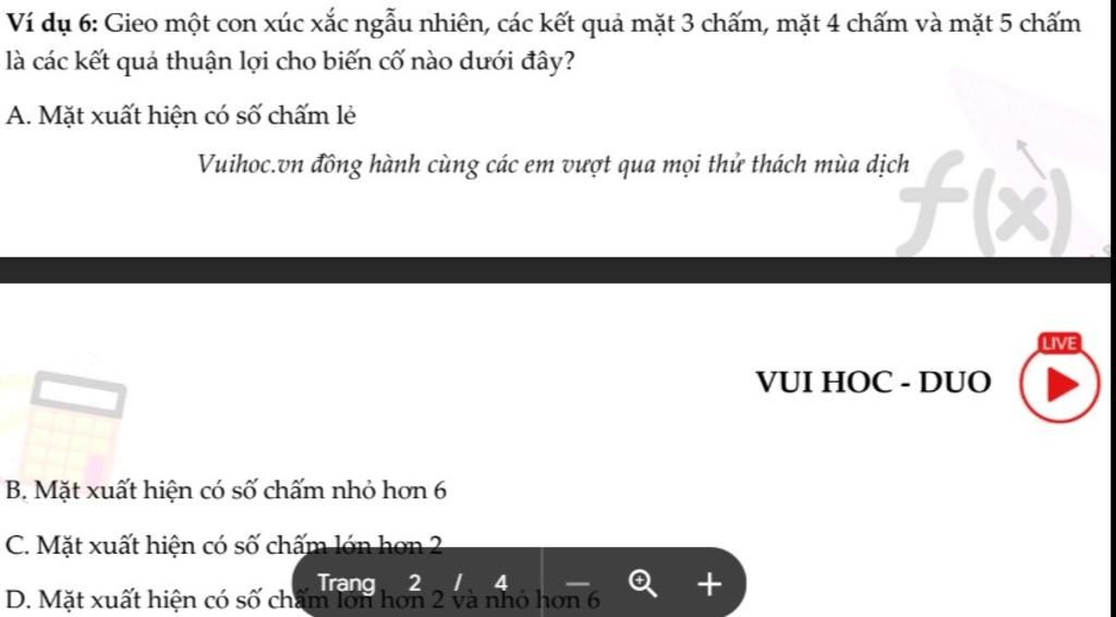 là các kết quả thuận lợi cho biến cố nào dưới đây?