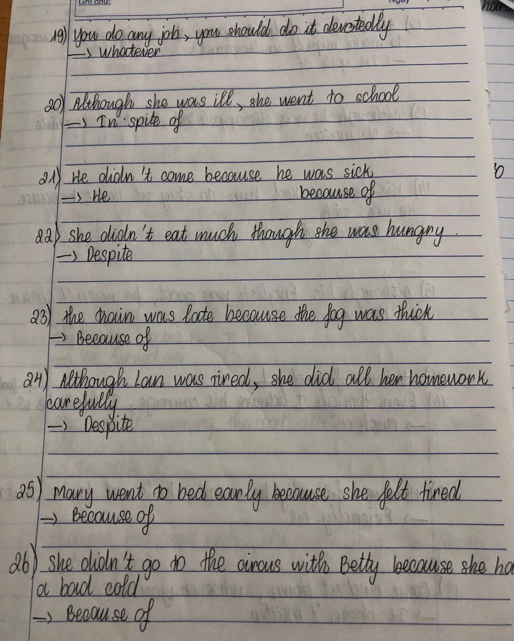 20) Although she was ill, she went to school