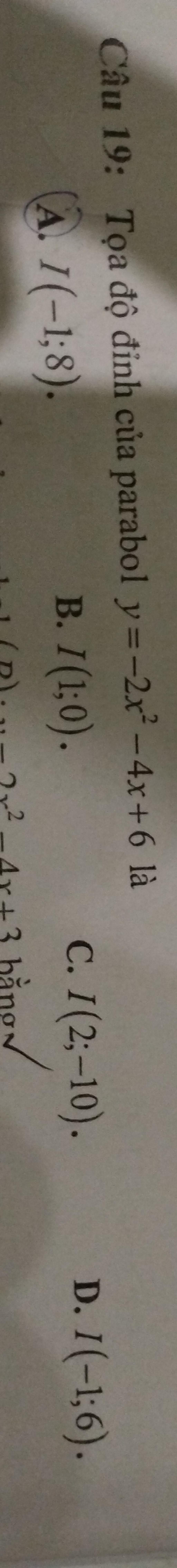 `=>` Đỉnh $\rm I(-1;8)$