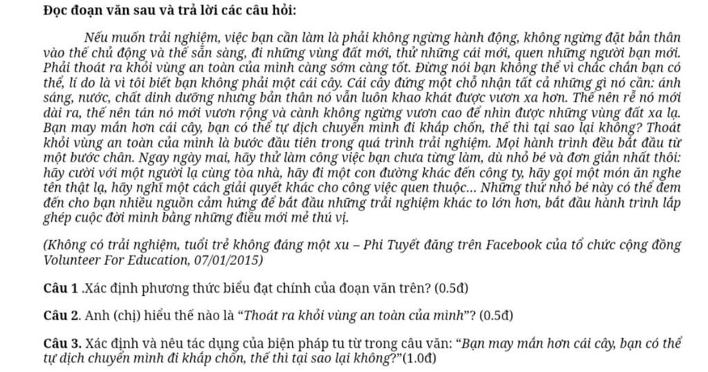 Câu 2: "Thoát ra khỏi vùng an toàn của mình" là dám nghĩ, dám làm, làm những thứ mình chưa bao giờ dám thực hiện.