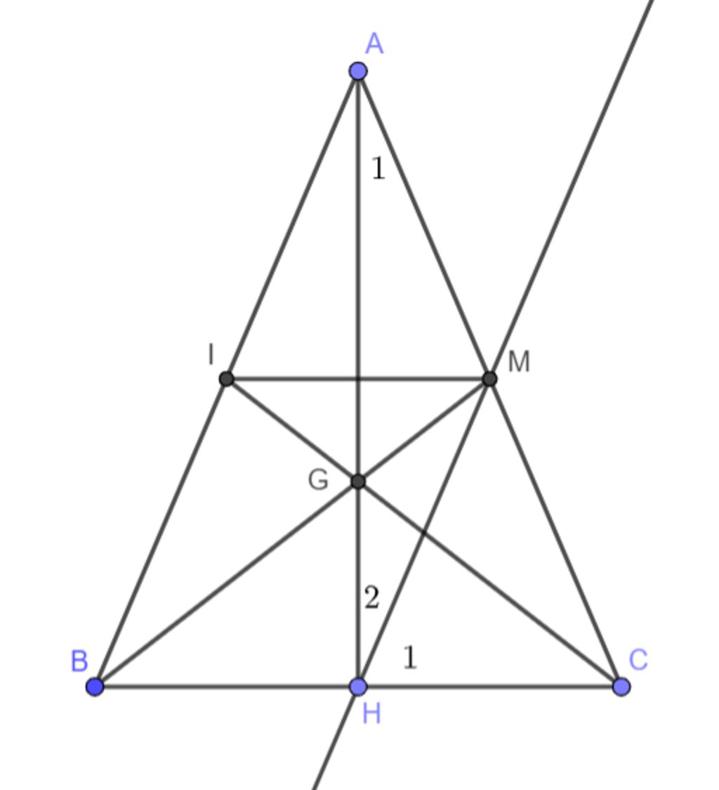 Mà $G$ là trọng tâm $\Delta ABC$ (giao hai trung tuyến $AH$ và $CI)$
