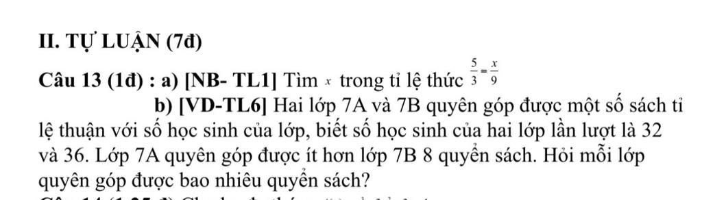 Vậy số quyển sách lớp `7A;7B` góp được lần lượt là: `64;72` (quyển)