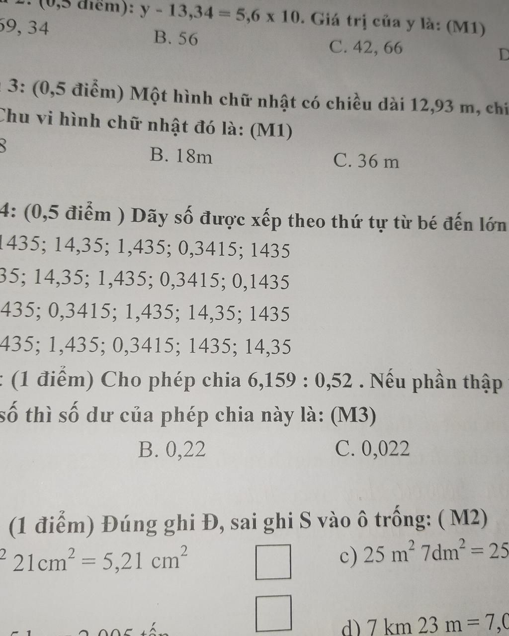 n): y - 13,34=5,6 x 10. Giá trị của y là: (M1)