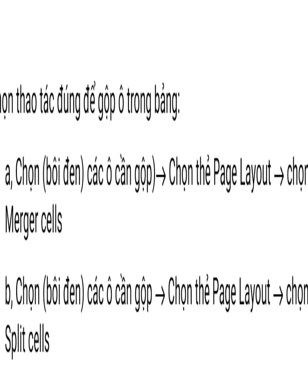 Chọn thao tác đúng để gộp ô trống bảng helpp