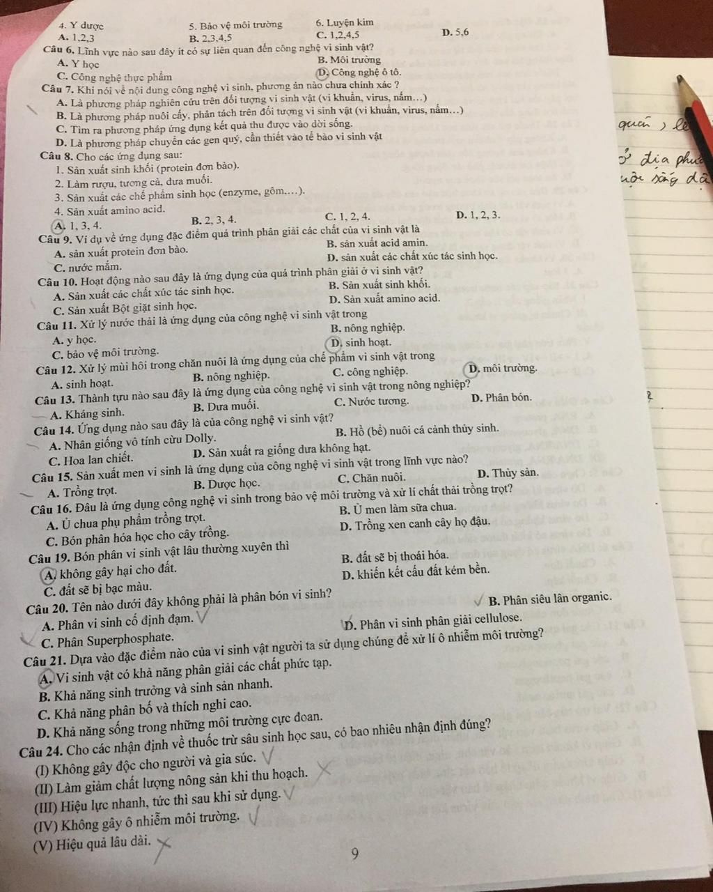 Câu 7. Khi nói về nội dung công nghệ vi sinh, phương án nào chưa chính xác? ...