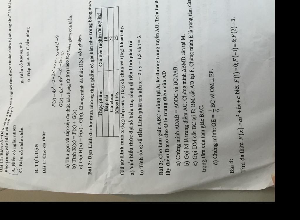 Bài 1: Cho đa thức