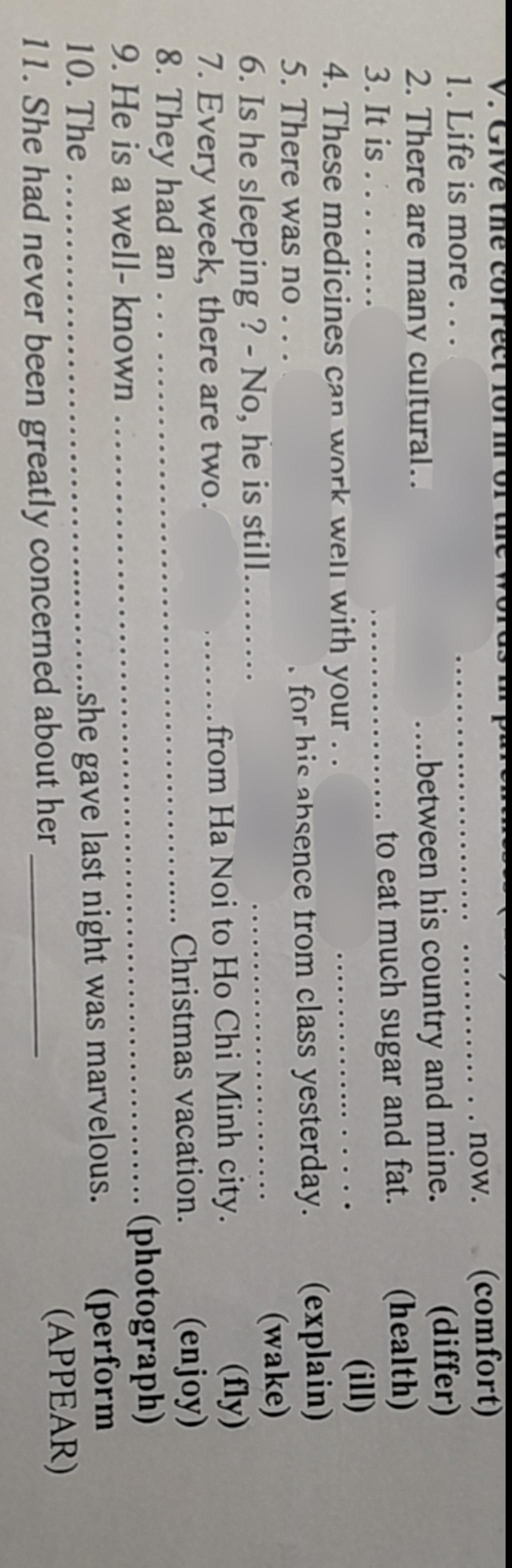 9. photographer: thợ chụp ảnh ( vì đang giới thiệu nghề nghiệp của người này nên chọn danh từ chỉ người)