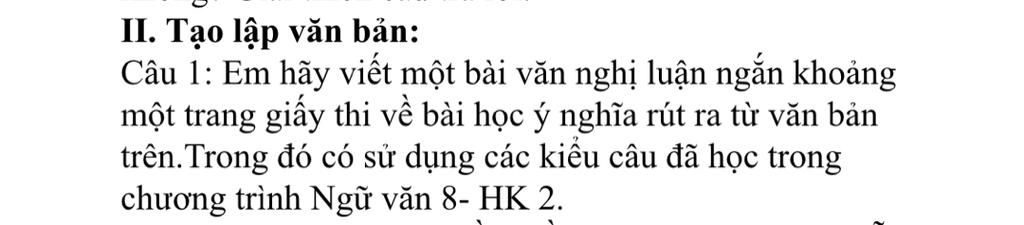 Câu 1: Em hãy viết một bài văn nghị luận ngắn khoảng