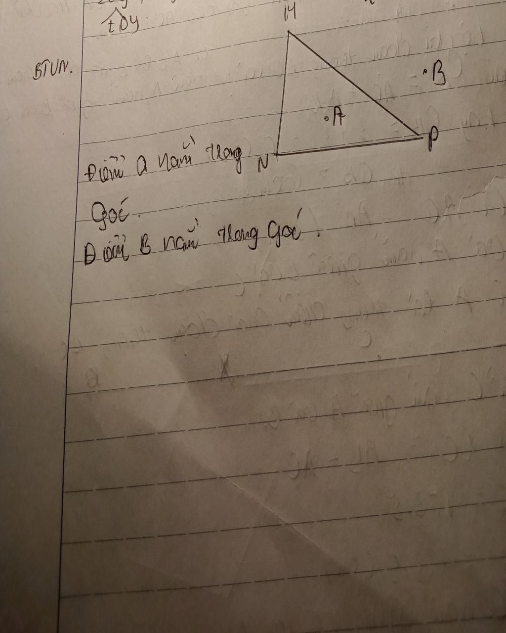 Điểm A nằm trong tam giác MNP và trong góc N