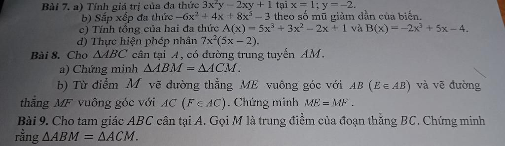 `a)` Xét `ΔABM` và `ΔACM` có:
