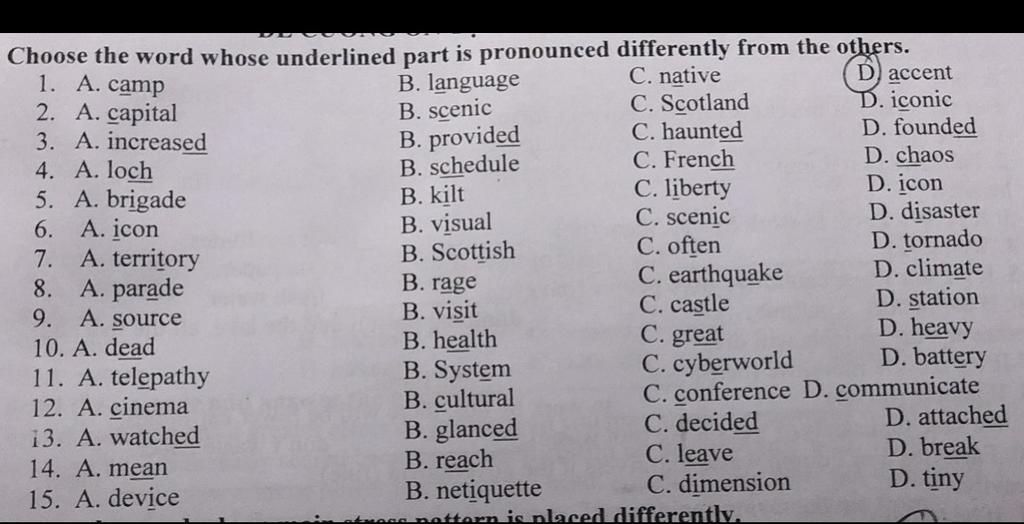 `14.D` (âm /eɪ/, còn lại /i:/)