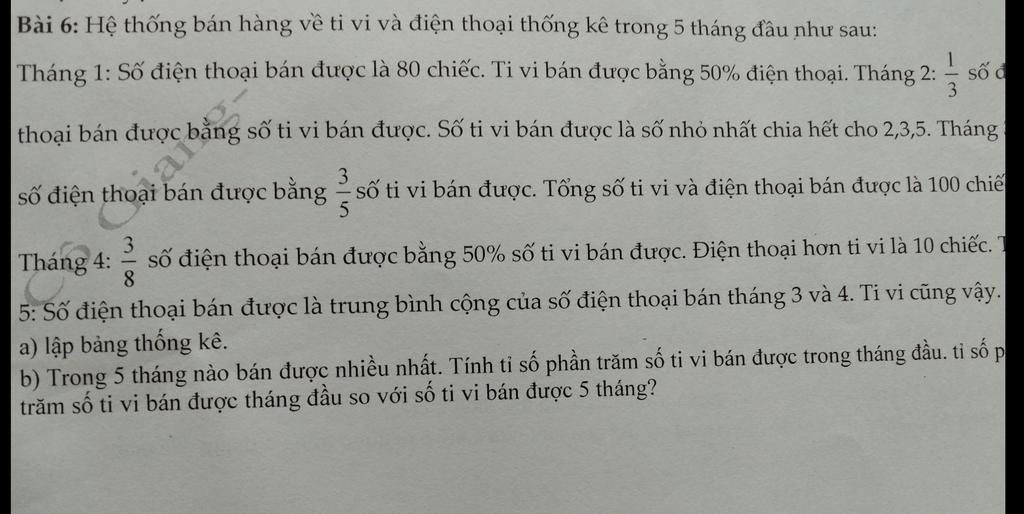số ti vi bán được. Số ti vi bán được là số nhỏ nhất chia hết cho 2,3,5. Tháng ...