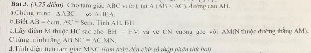 c.Lấy điểm M thuộc HC sao cho BH = HM và vẽ CN vuông góc với AM(N thuộc đường thẳng AM).