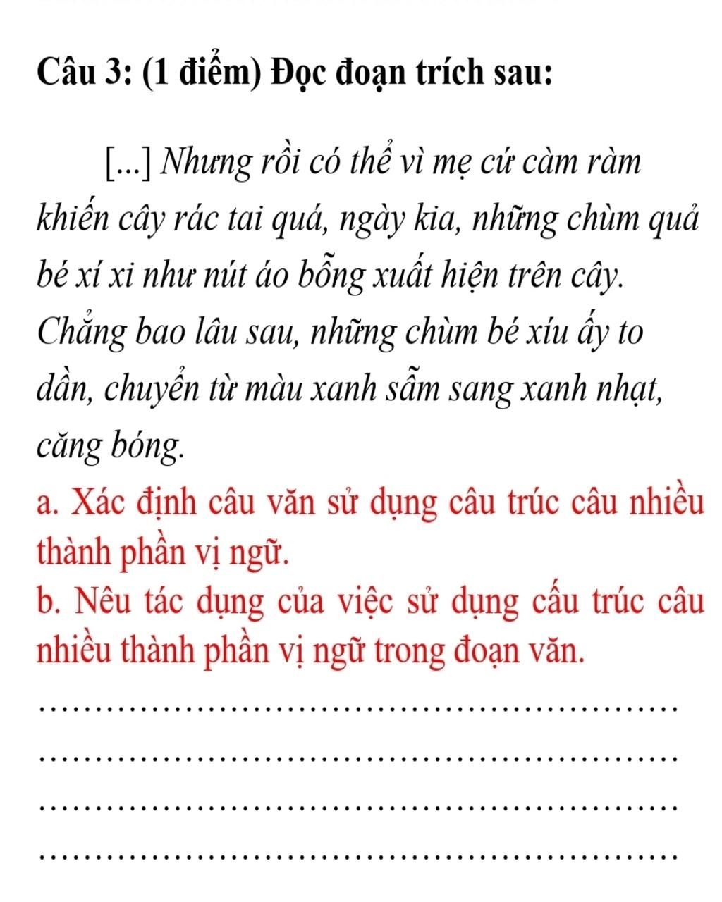 a, Câu văn sử dụng cấu trúc câu nhiều thành phần vị ngữ là :