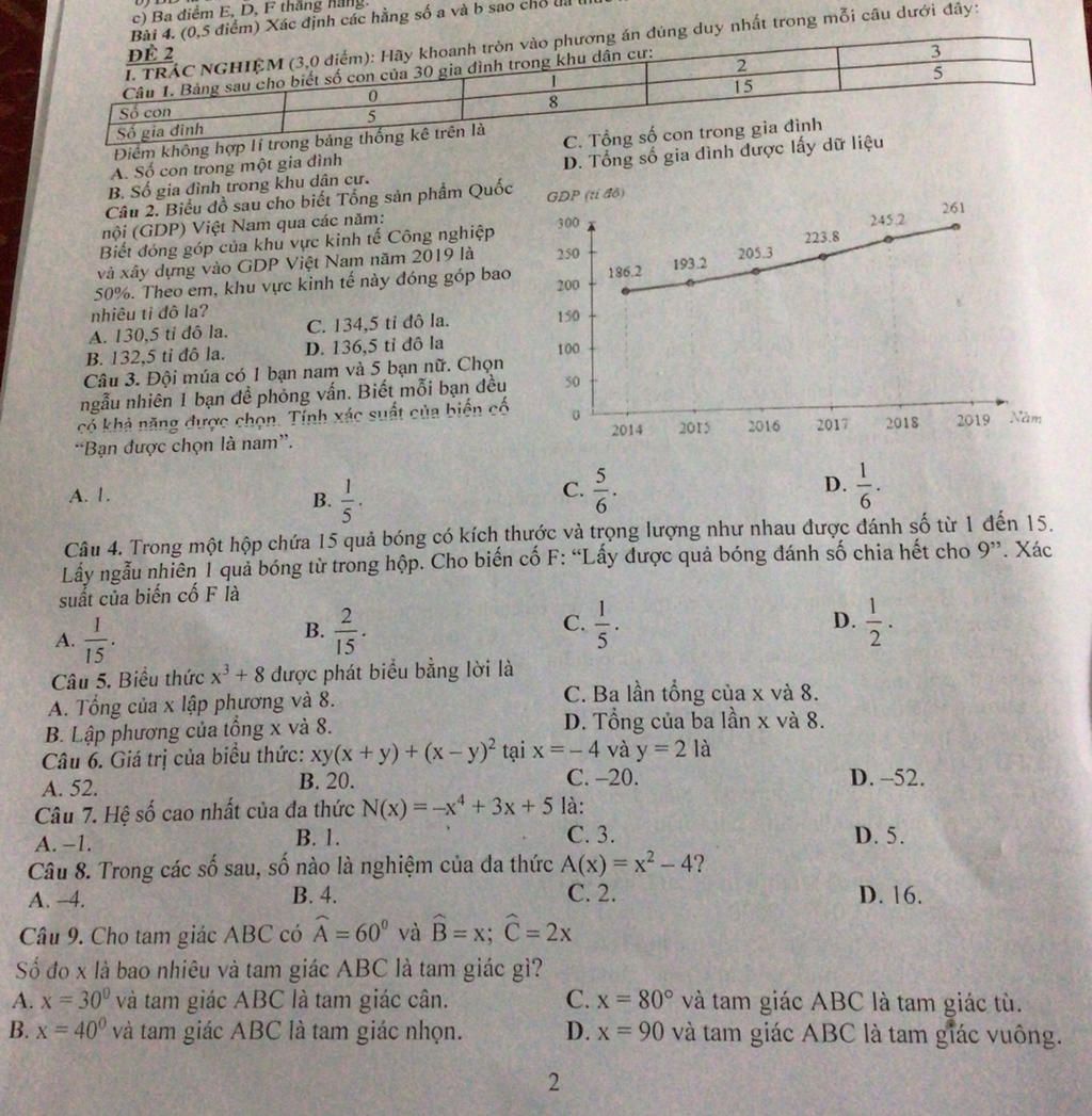 Câu 1. Bảng sau cho biết số con của 30 gia đình trong khu dân cư: