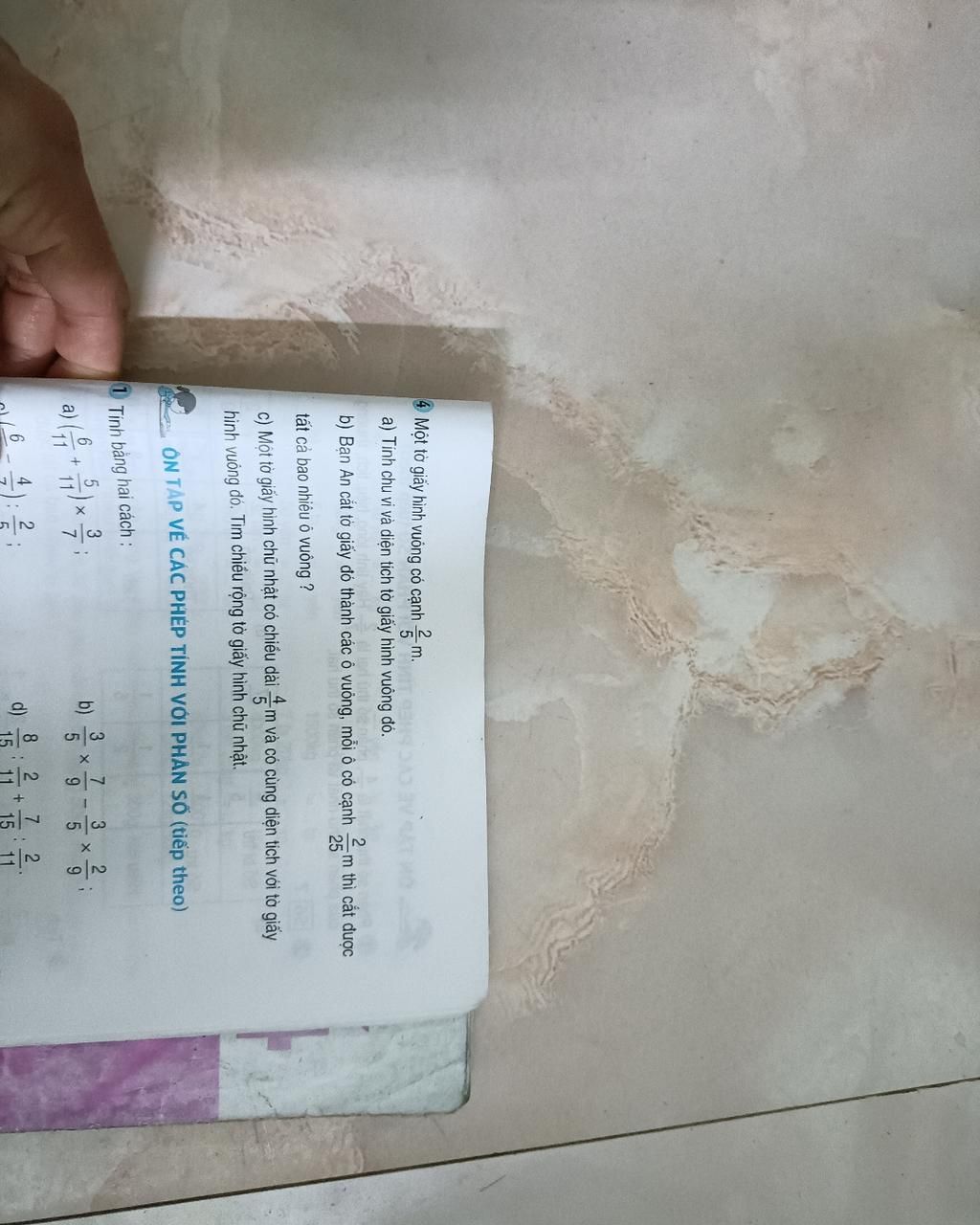 Giải thích các bước giải:a) Chu vi tờ giấy hình vuông là:2/5 x 4 = 8/5