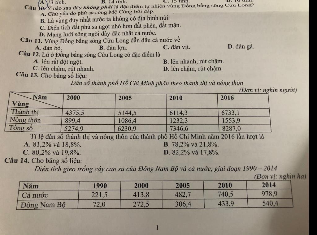 Câu 10.Ý nào sau đây không phải là đặc điểm tự nhiên vùng Đồng bằng sông Cửu Long?