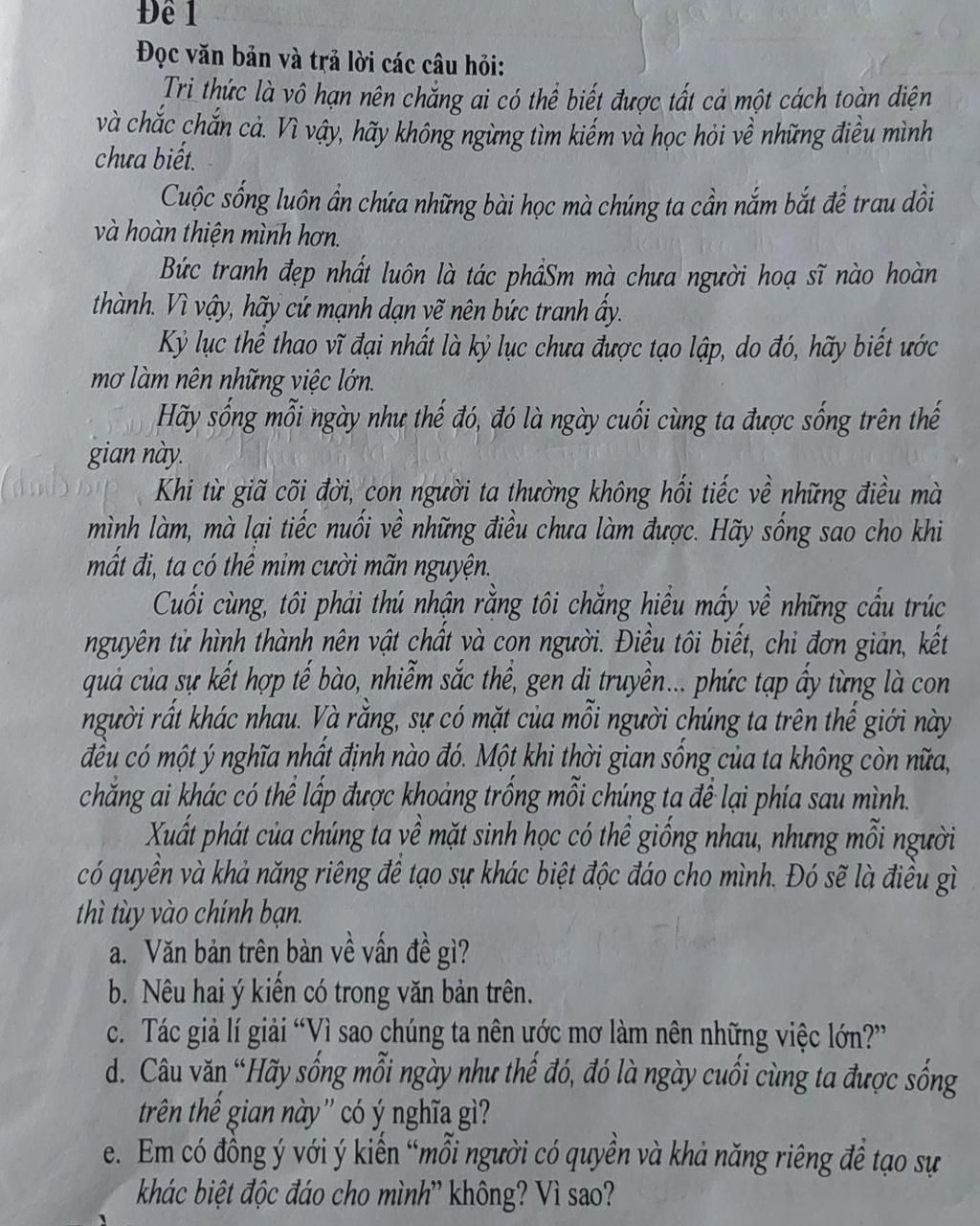 Đọc văn bản và trả lời các câu hỏi: