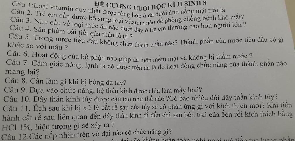 câu 7:Cảm giác nóng, lạnh ta có được trên da là do hoạt động chức năng của thụ quan