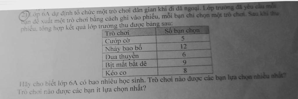 Trò chơi được các bn lựa chọn ít nhất là : cướp cờ 5 người