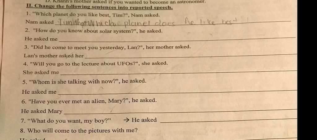 → chú ý đổi ngôi, thì... cho phù hợp.