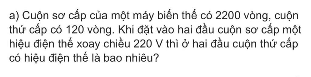 a) Cuộn sơ cấp của một máy biến thế có 2200 vòng, cuộn