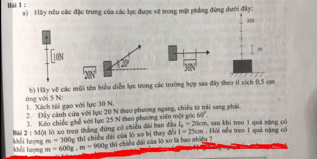 b) Hãy vẽ các mũi tên biểu diễn lực trong các trường hợp sau đây theo tỉ xích 0,5 cm