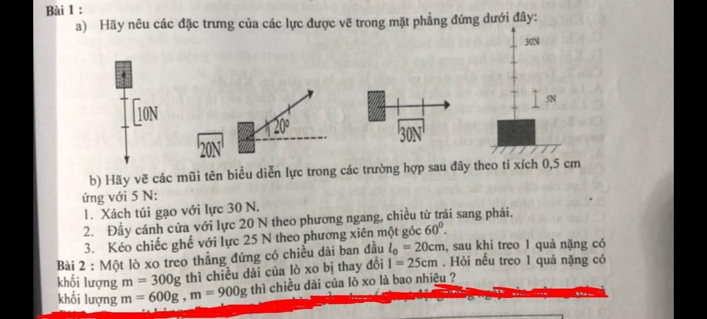 b) Hãy vẽ các mũi tên biểu diễn lực trong các trường hợp sau đây theo tỉ xích 0,5 cm